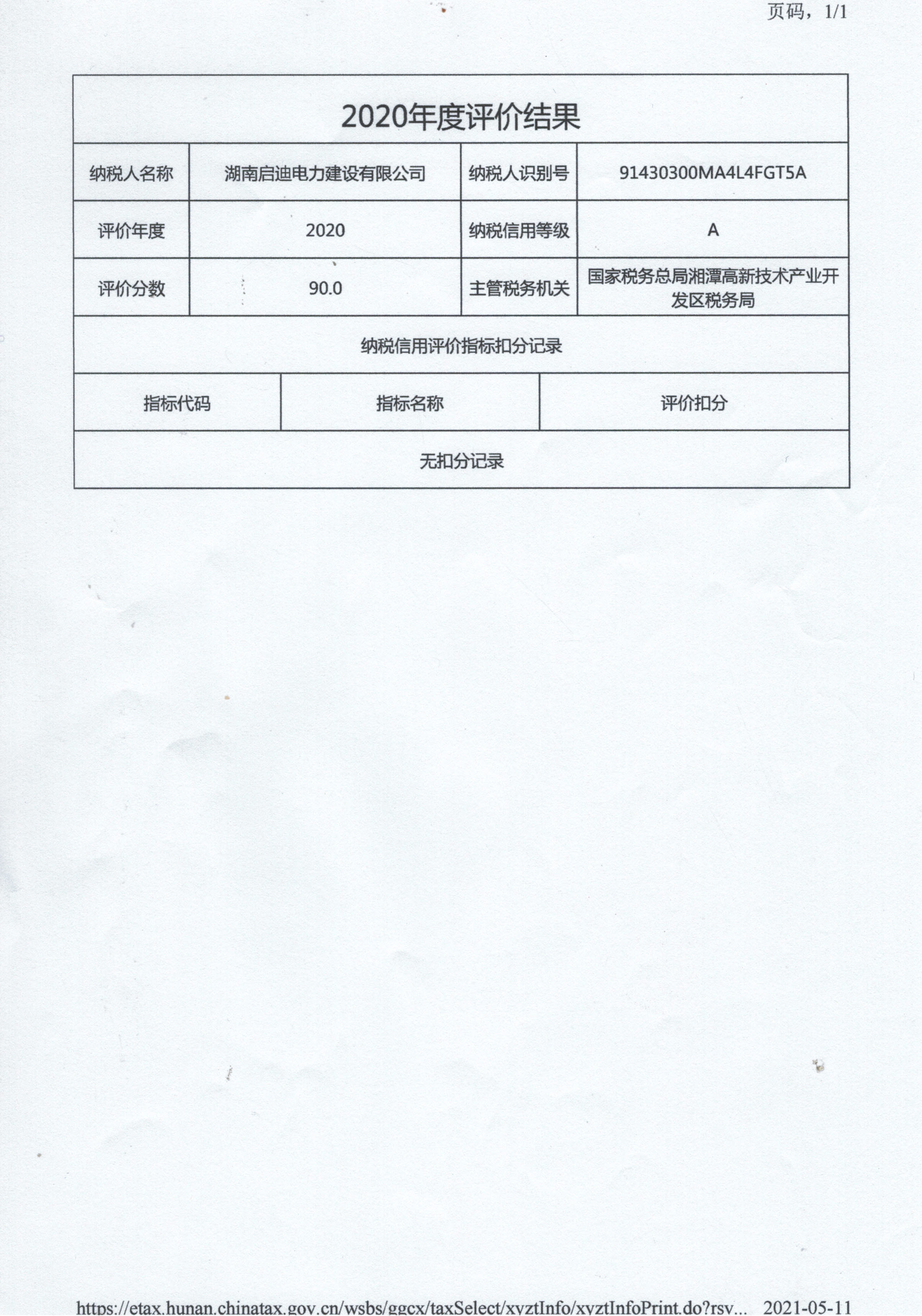 企業(yè)納稅信用等級報告: