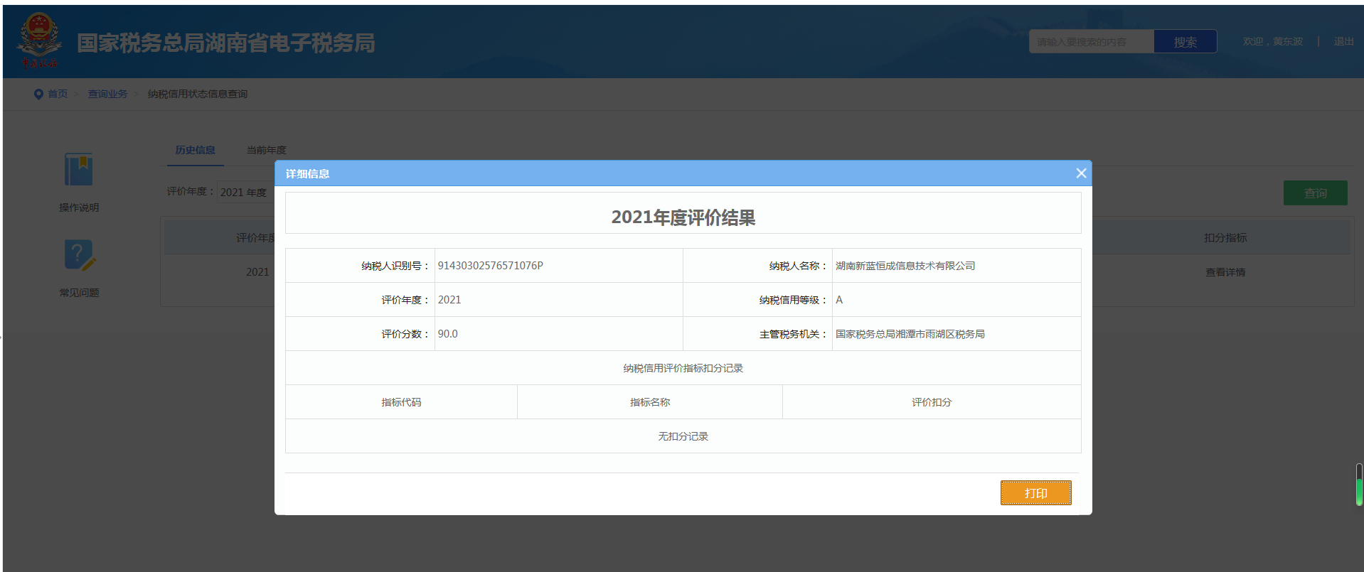 企業(yè)納稅信用等級報告: