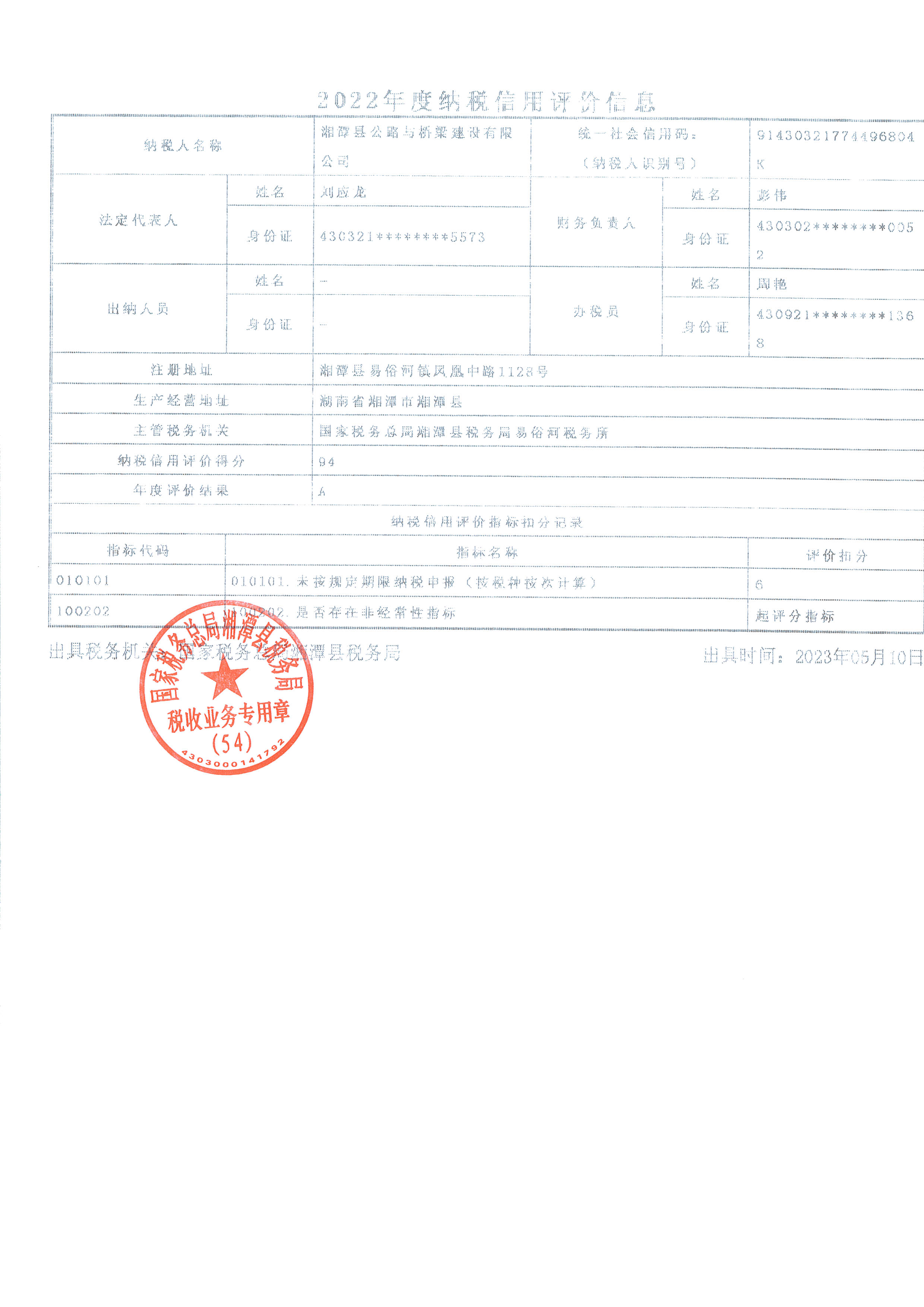 企業(yè)納稅信用等級(jí)報(bào)告: